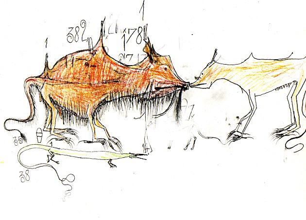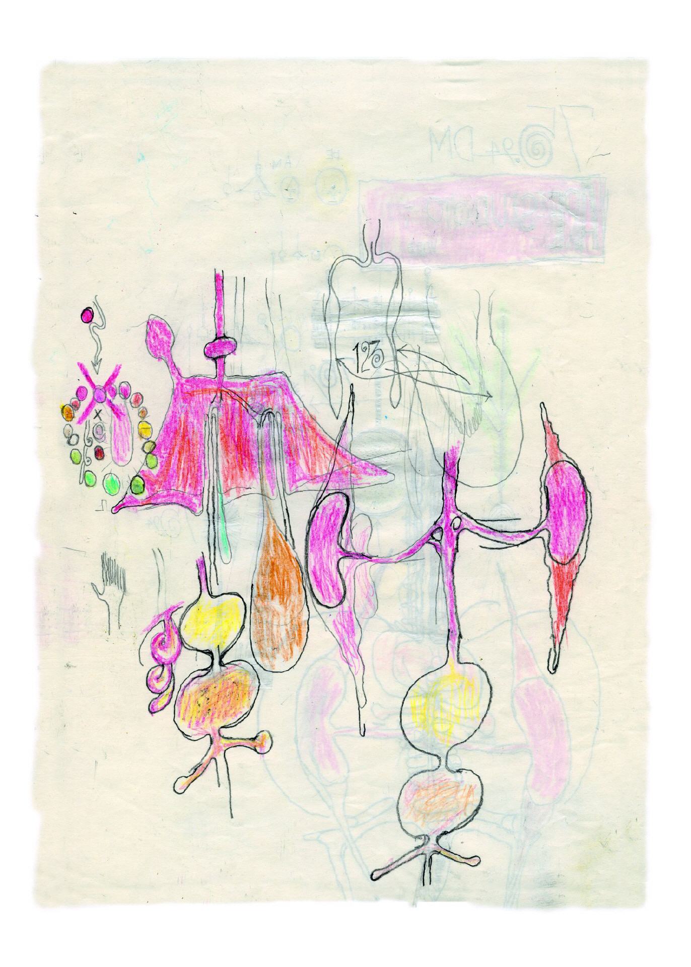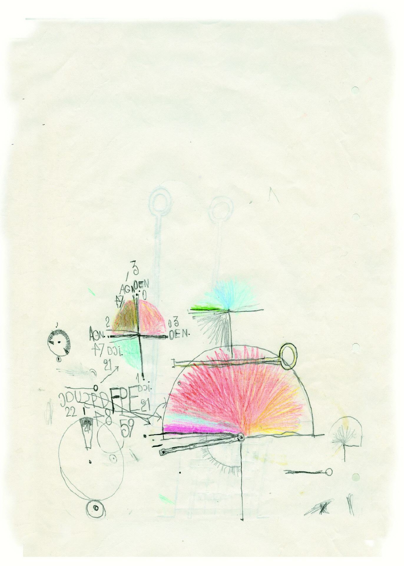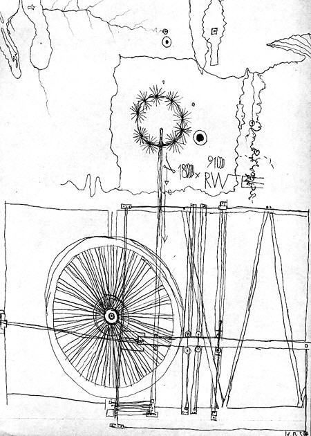 Karl Burkhard widmete sich in seinen Zeichnungen mit unerschöpflicher Phantasie seinen Themen: Menschen, Tiere, Fabelwesen, Pflanzen, anatomische Erkundungen, Landkarten, Maschinen, Gebäude, Zahlen, Tabellen, Zeichen, astronomische Ereignisse, Visionen und Weltuntergangsszenarien. „Das Zeichnen hat mir mein lieber Vati beigebracht,“ erklärte er mal mit hoher Fistelstimme, mal mit tiefer Bassstimme. Er zeichnete mit der Lupe und kommentierte lebhaft seine Darstellungen. Burkhard war außerdem Sammler und baute Installationen aus Fundstücken, Holzlatten, Eisenstangen und „Flatterbändern“. Damit steckte er Areale ab: er sperrte Straßen und umwickelte Gebäude.